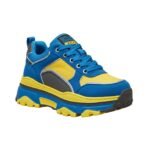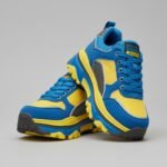 Geïnspireerd door het levendige ritme van het stadsleven en de veranderlijke kracht van de Nederlandse delta’s, combineren deze trainers elektrisch blauw en helder geel met donkergrijze accenten voor een uitgesproken look.