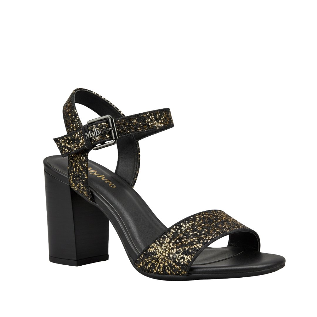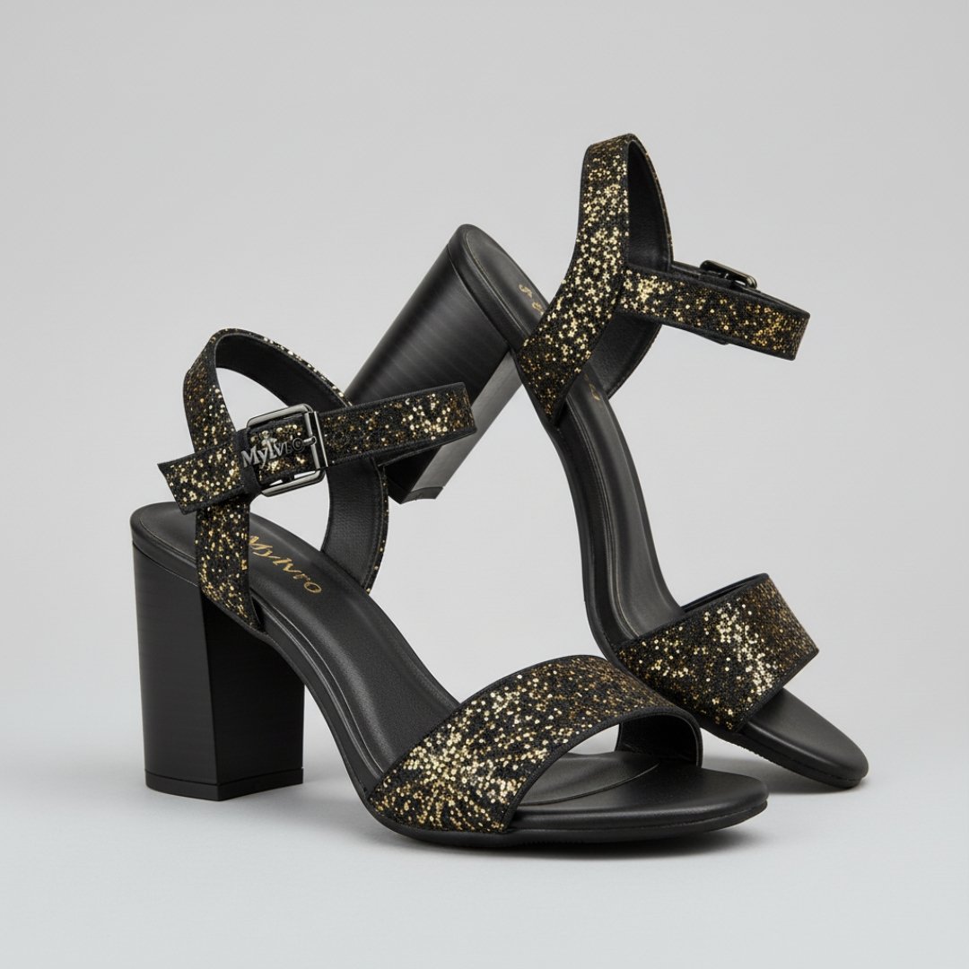 SKU: AB98765 Category: Heeled Sandals Tags: avond schoenen, blokhak sandalen, dames sandalen, disco chic, feest sandalen, glitter hakken, indoor schoenen, Mylvro sandalen, sprankelende hakken, winter feest