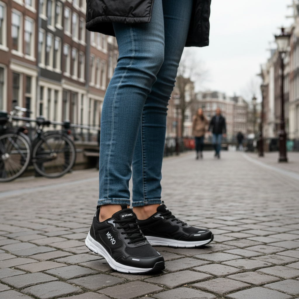 De Medium (M)-maat past EU 38–39 (UK 5–6) en combineert ademend comfort met een natuurlijke demping voor stadswandelingen en casual outfits.
