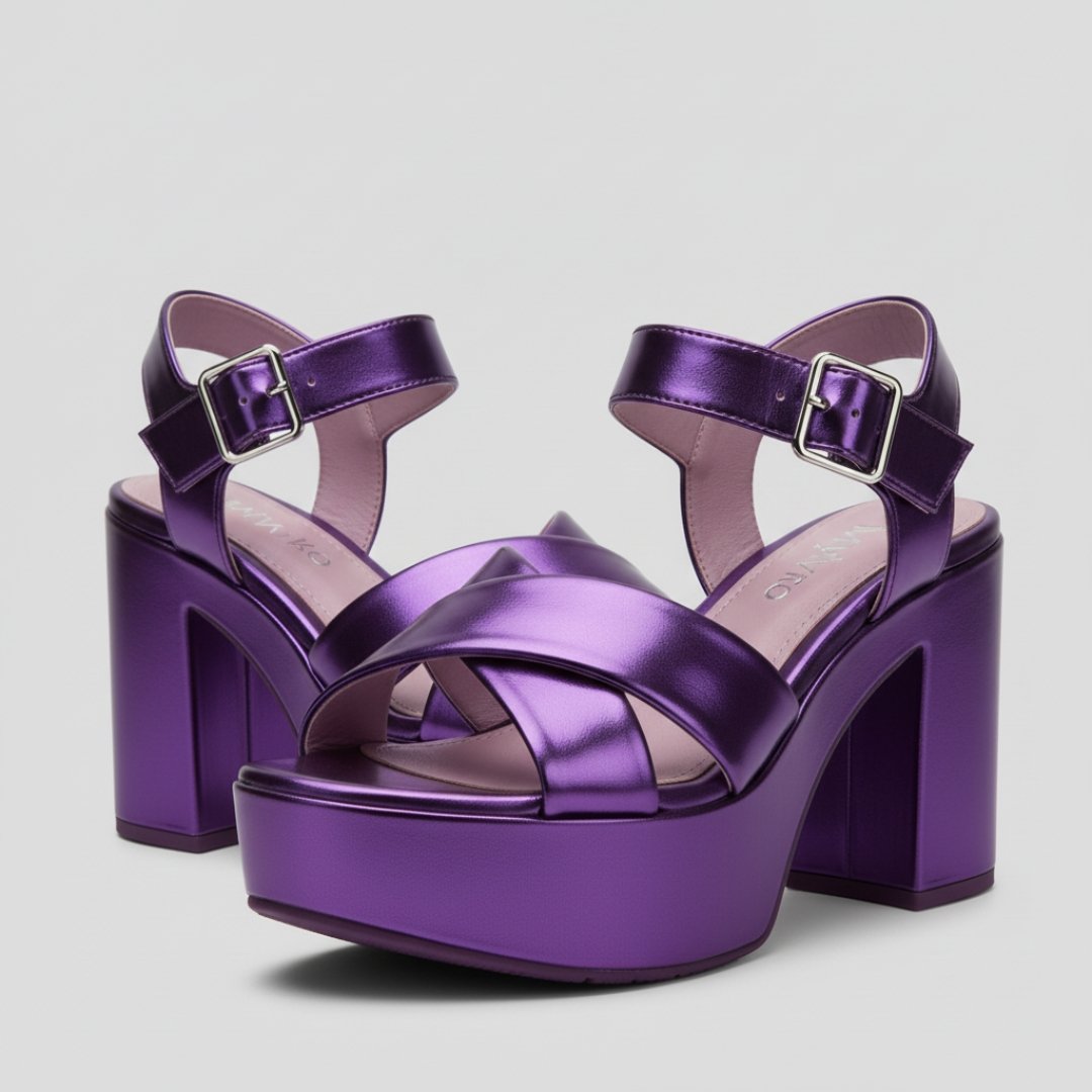 SKU: ER4444 Category: Heeled Sandals Tags: comfortabele hakken, dans schoenen, disco sandalen, feestkleding dames, indoor party, metallic schoenen, Mylvro platform hakken, paarse sandalen, statement hakken, winter glamour