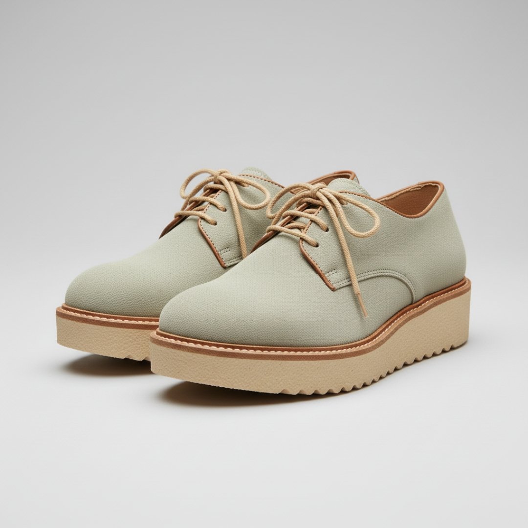 De crepezool, geïnspireerd door klassiek ambachtelijk schoeisel, biedt natuurlijke veerkracht en comfort, ideaal voor lange dagen op Nederlandse klinkers.